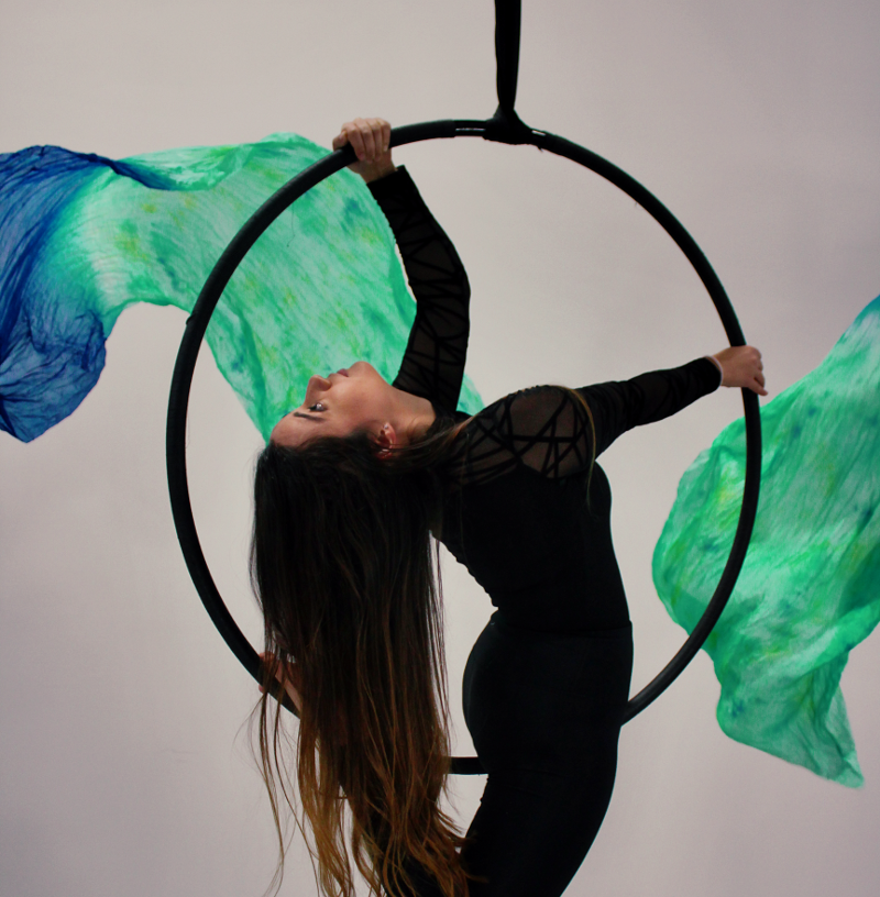 This class uses a lyra, also known as an aerial hoop, to help you develop a new set of skills and strengths. In this multi level class we will work on building strength & flexibility, as well as various poses and tricks while the hoop is either static or spinning. We will also work on linking moves together to create sequences that can later be used in choreography. Each 1 hour long class consists of a warm-up to prepare the muscles and prevent injury. Followed by guided technique instruction and will conclude with a brief cool down.