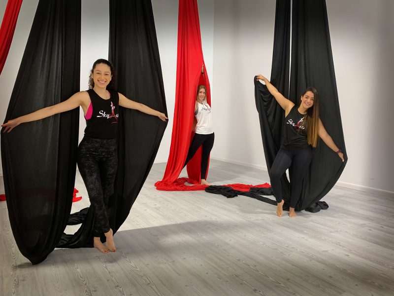 Sky Arts Studio is Miami’s premier aerial fitness studio. Our instructors are highly experienced with over 15 years total experience and offer a variety of classes including Aerial Silks, Aerial Hoop, Aerial Yoga, Flexibility training, Acro Yoga and Strong by Zumba™.With over 15 years of experience, our instructors are highly skilled and able to adapt to students of any level of skill, physicality, and age.We offer individualized classes tailored to each student’s strengths and weaknesses, all aimed at helping them reach their highest potential.Book your first class today!